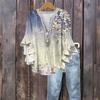Tops For Women Cute Button V Neck 3/4 Sleeve Blouses Print Top Casual Shirts