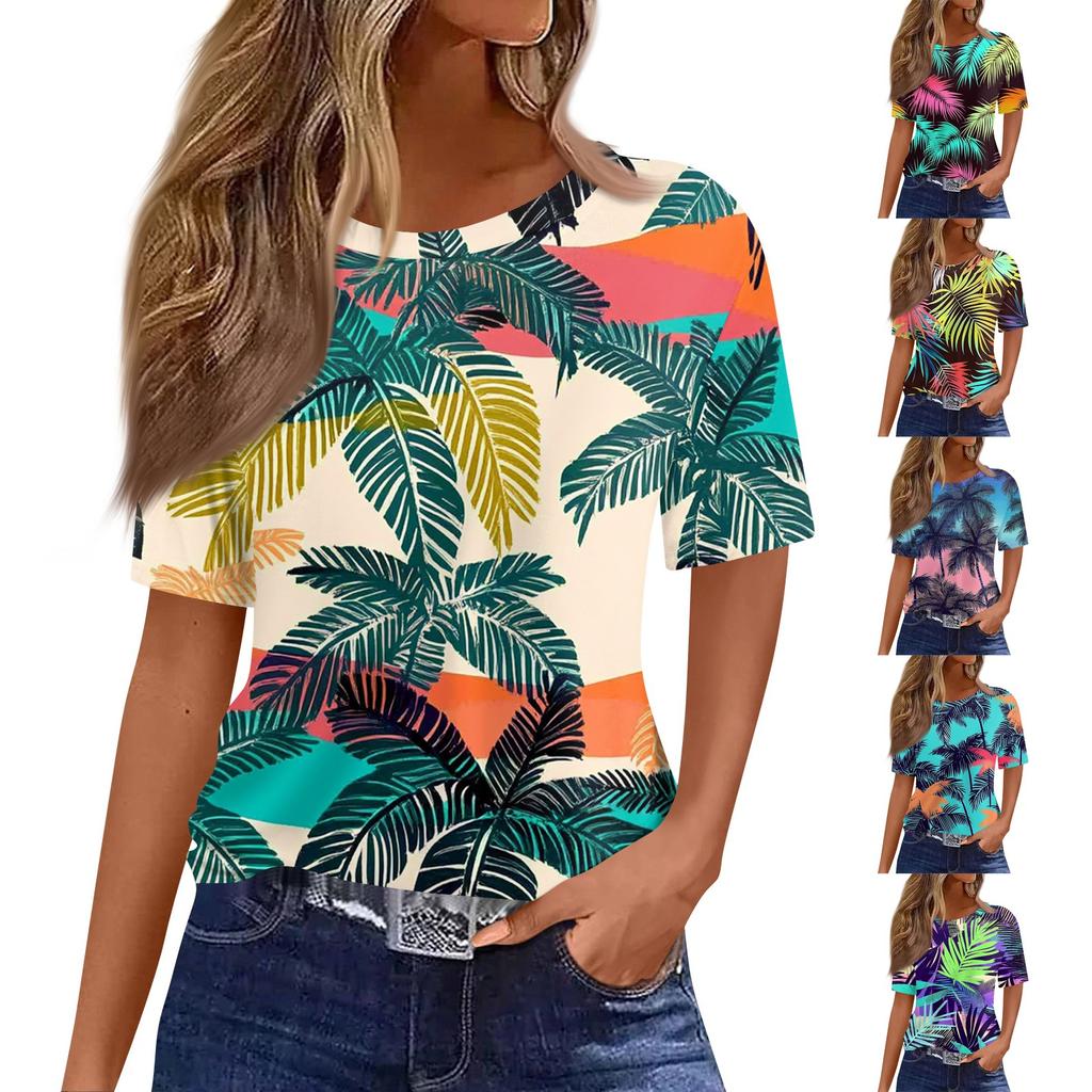 Women's Fashionable Casual Short Sleeve Print Round Neck Pullover Top