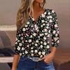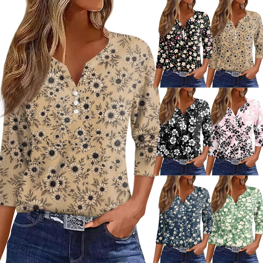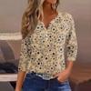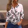 Women's T Shirt Print Button 3/4 Sleeve Daily Weekend Fashion Basic V- Neck Regular Top