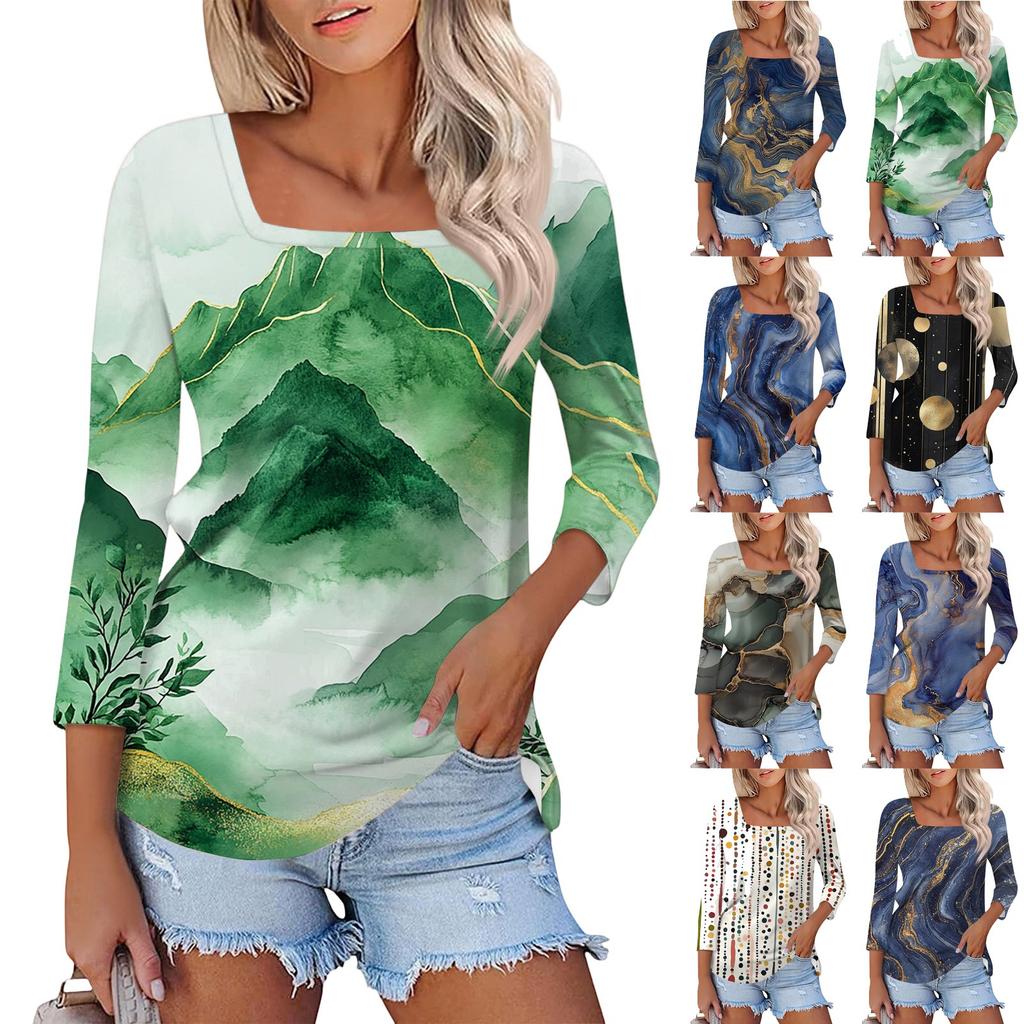 Women's T Shirt Tee Print 3/4 Sleeve Daily Weekend Fashion Basic Square Neck Regular Top