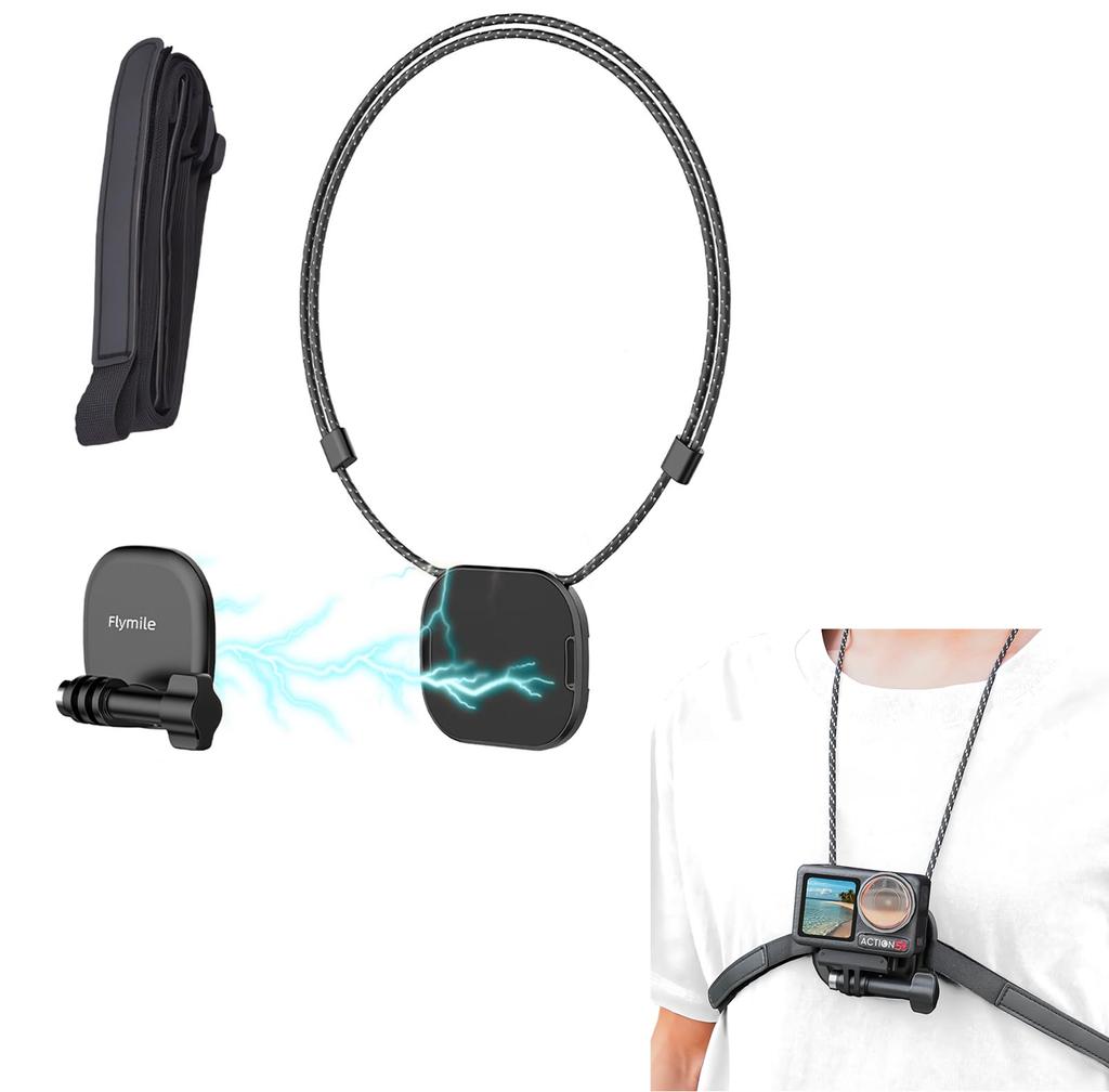 SHEAWA Magnetic Camera Neck Mount with Chest Strong Magnet for DJI Osmo 5 Go and Other Action Horizontal and Vertical Adjustable Stable Mount Adapter