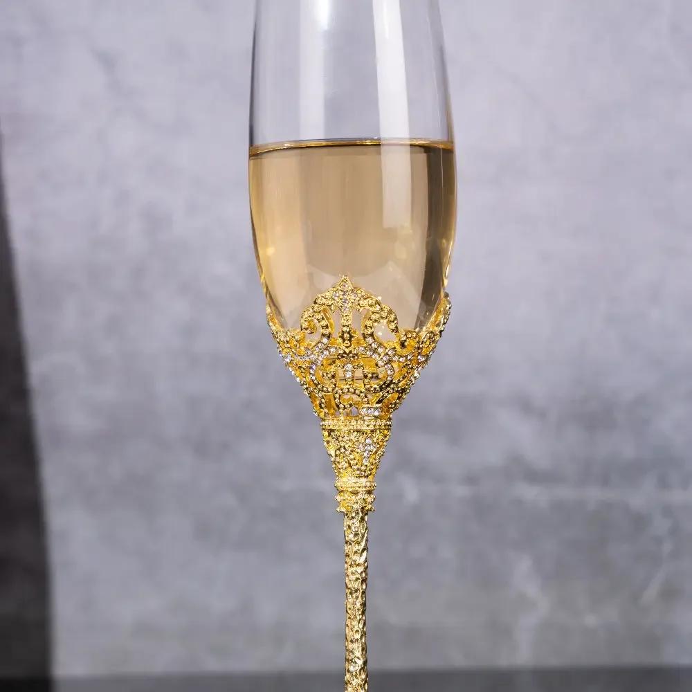 Original Flute-shaped Embossed Crown Champagne Glass, Golden Light Luxury Sparkling Wine Cup Ceremonial Sweet Cocktail Glasses