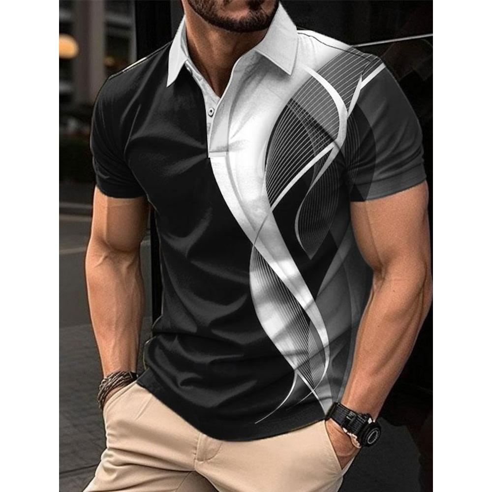 Men's Fashion Golf Collar T-shirt Casual 3D Printed Polyester Short Sleeve Collar T-shirt Micro Elastic Collar T-shirt