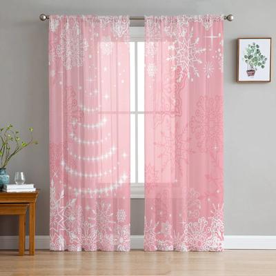 Christmas Snowflake Pink Sheer Drapes for Living Room Decoration Window Curtains for Kitchen Curtains