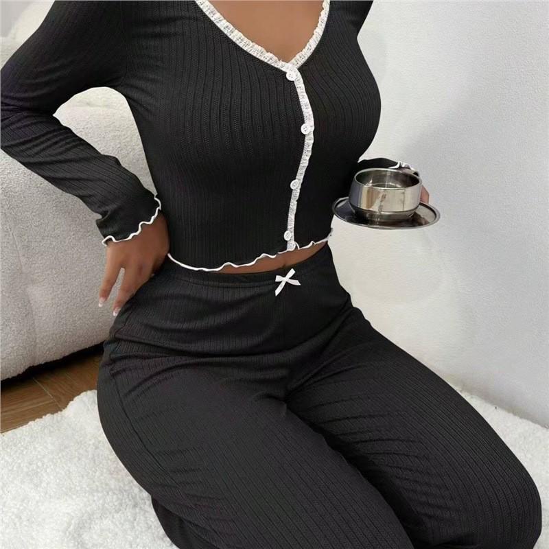 European & American Lace Long Sleeve Pajama Set - Slim Fit