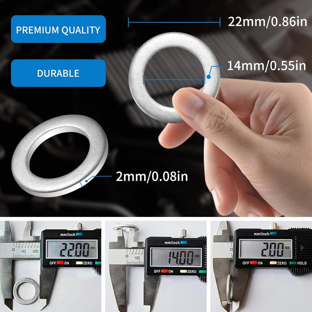 【Product Informations】O.D.(outside diameter): 0.86 inch, I.D.(inside diameter): 0.55 inch, Thickness: 0.08 inch. Each pack includes 10 oil plug gaskets, offering a cost-effective solution for multiple oil changes. Never worry about running out of gaskets when you need them the most. Stay prepared for future maintenance.