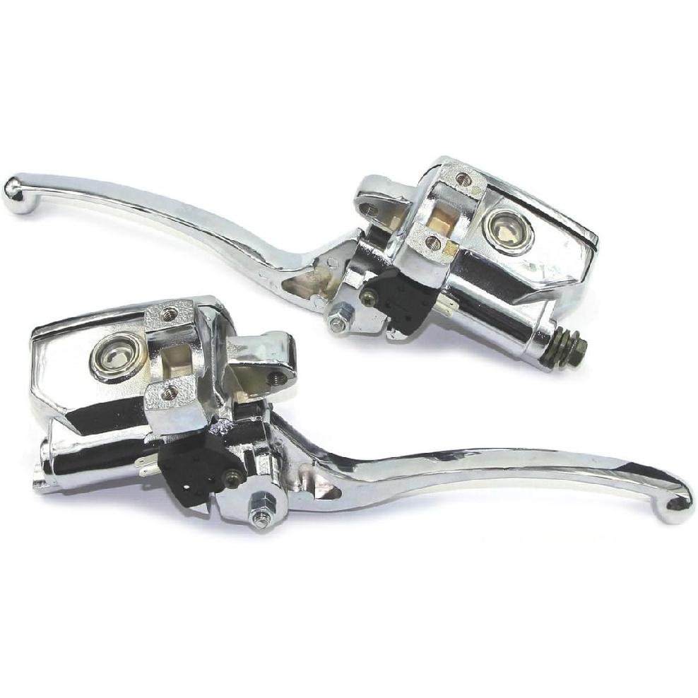 Universal Motorcycle 7/8 Inch 22mm Brake Master Cylinder Clutch Lever Left & Right Set Handlebar Fit for Honda Yamaha Suzuki Kawasaki, 1 Pair Chrome