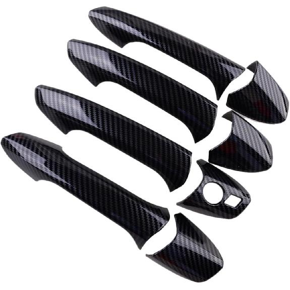 Car Exterior Door Handle Cover Trim Cap Set Carbon Fiber Texture Fit for Mercedes-Benz W246 W204 W212 X204 W166 W117 LHD Black