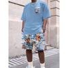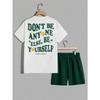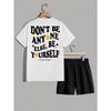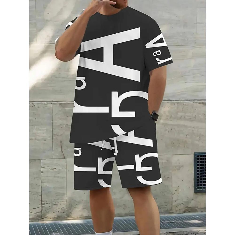Men's New Summer Fashionable Breathable Round Neck Top Paired with Letter Pattern Drawstring Shorts Casual Sweat Wicking Set