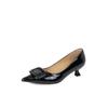 2026 New Spring and Autumn Temperament Single Shoes Pointed Toe Shallow Mouth Metal Square Buckle Slip-on Kitten Heel Shoes