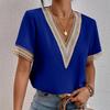 Women Loose Top Blouse Short Sleeve V Neck Lacework Shirt 8 Colors
