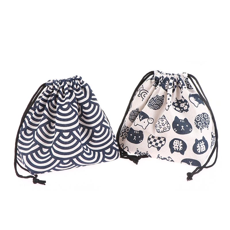 1Pc Japanese Style Drawstring Lunch Box Storage Bag For Travel Picnic Portable Easy Wash Bento Lunch Box Tote Pouch
