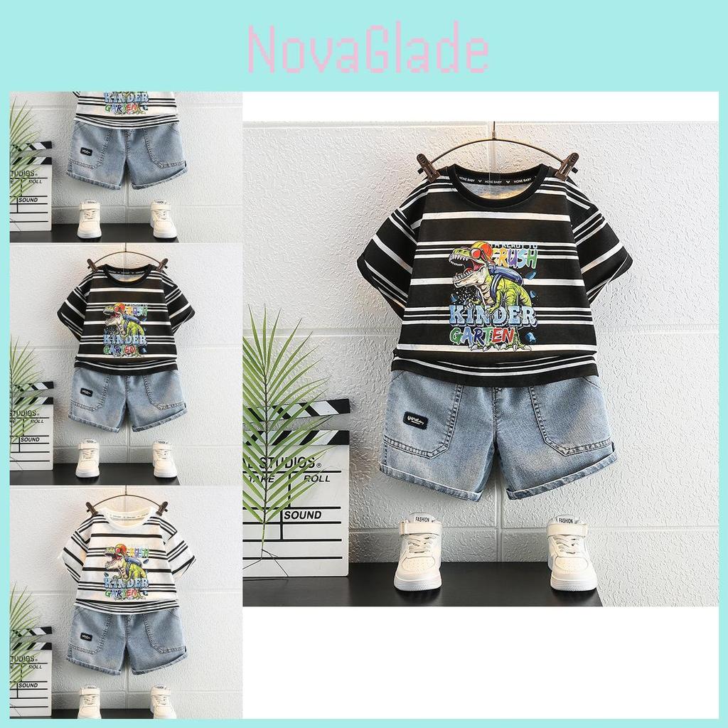 Stylish Korean Summer Outfit For Boys Two Piece Set Short Sleeve Shorts Soft Cotton