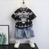 Trendy Boys Summer Short Sleeve Outfit With Stylish Denim Shorts For Kids 3 To 8 Years Old