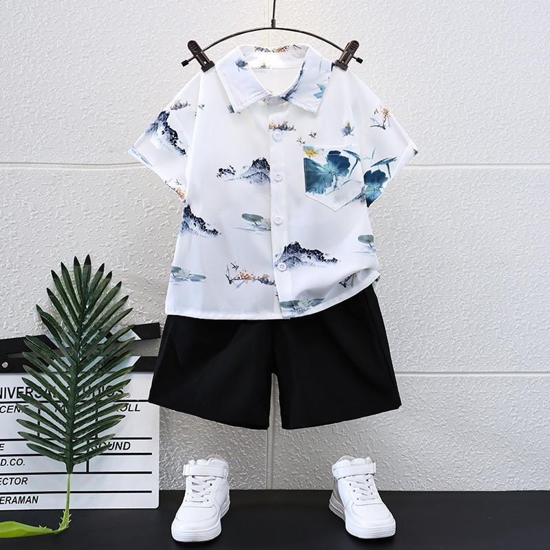 Trendy Summer Childrens Outfit For Boys Featuring Soft Cotton Short Sleeve Shirt And Shorts Set