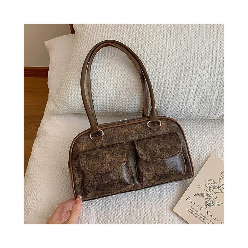 (Coffee) Retro Small Double Pockets Shoulder Bags for Women 2025 New Fashion Trend Designer Underarm Bag Female Handbags and Purses
