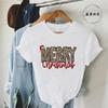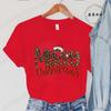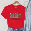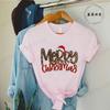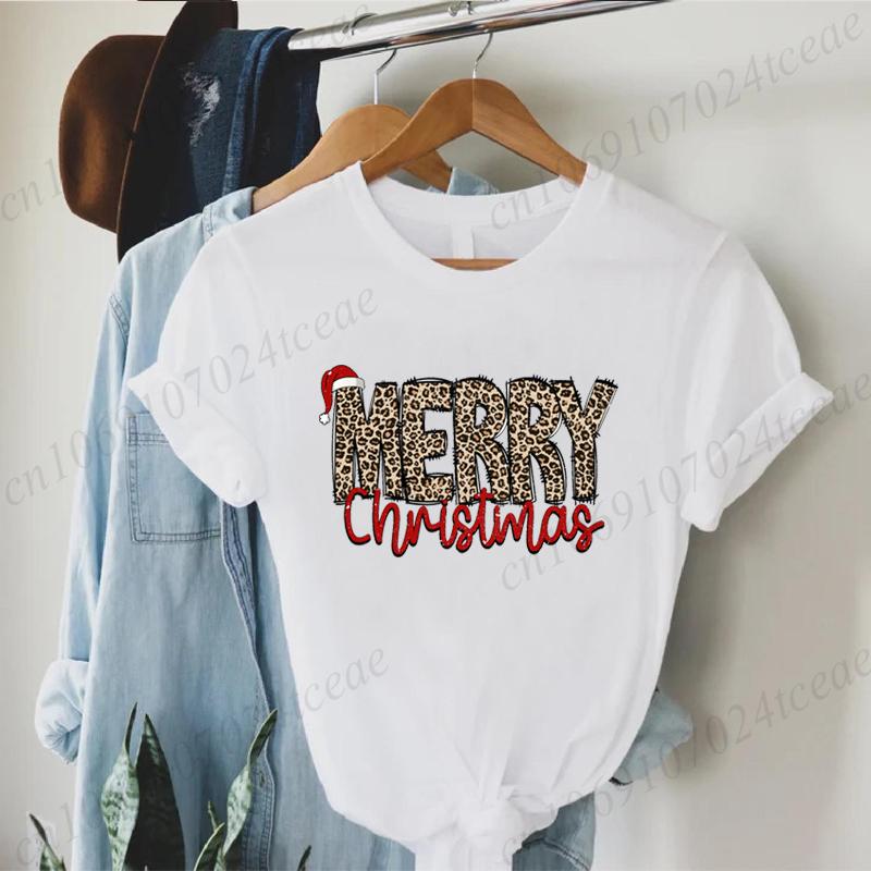 Leopard Merry Christmas Print TShirts Crew Neck Tshirt Casual Short Sleeve Top for Christmas Unisexs Clothing Tshirt Top