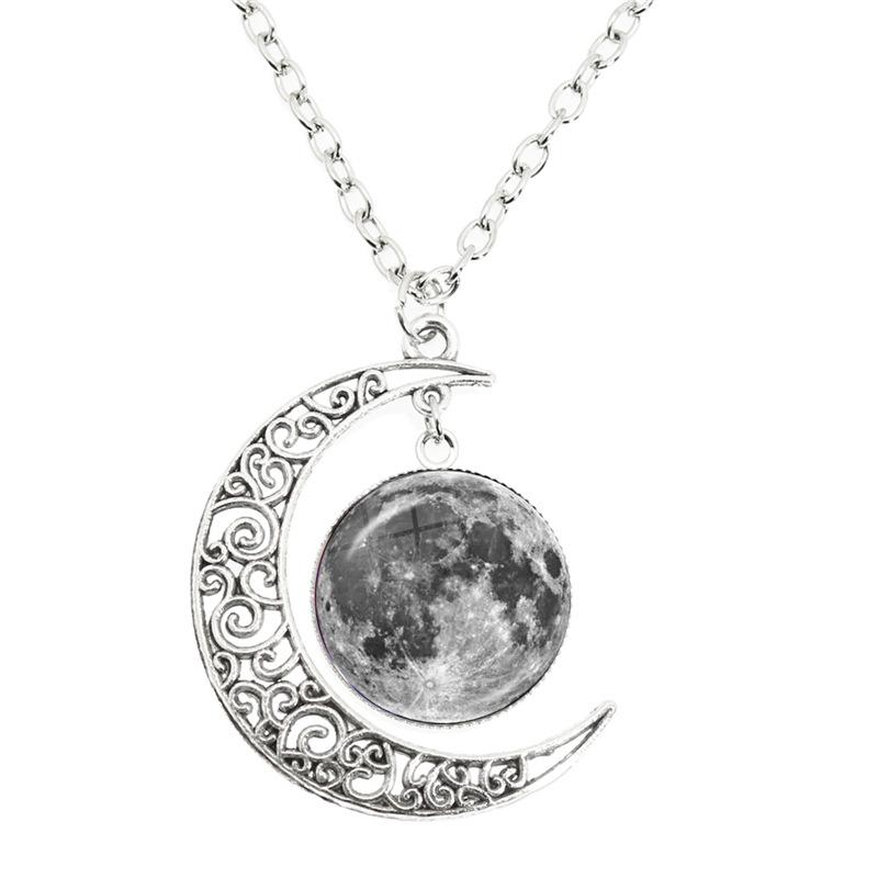 Phase Of The Moon Necklace Handmade Glass Dome Full Moon Lunar Eclipse Necklace Pendant Jewelry Gift for Astronomy Enthusiast