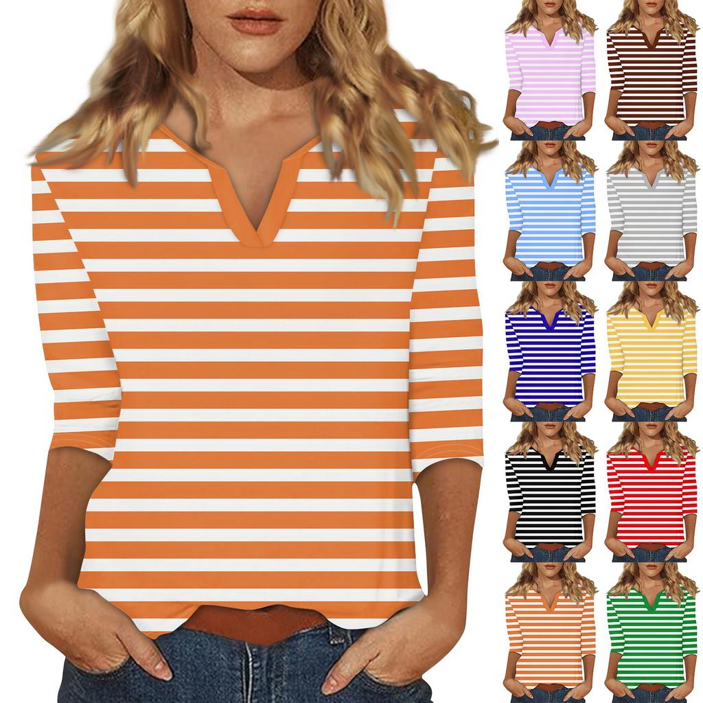 Women's Stand Collar 3/4 Sleeve Printed Top T-shirt