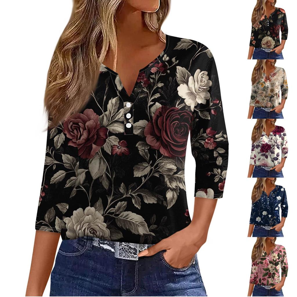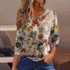 Women's T Shirt Tee Print Button 3/4 Sleeve Tunic Daily Weekend Fashion Basic V- Neck Regular Top