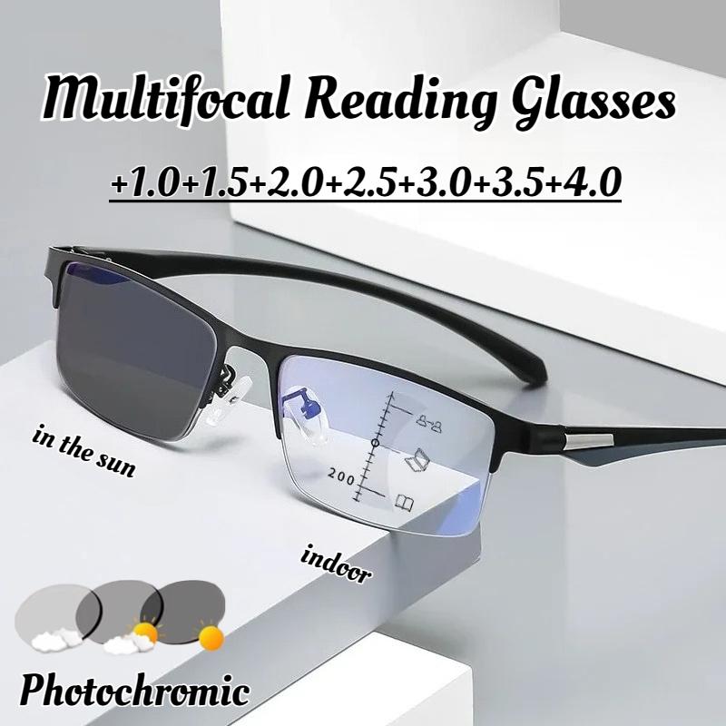 Multifocal Photochromic Reading Eyeglasses Men Women Titanium TR90 Progressive Bifocal Anti Blue Ray UV Protect Presbyopic Glasses