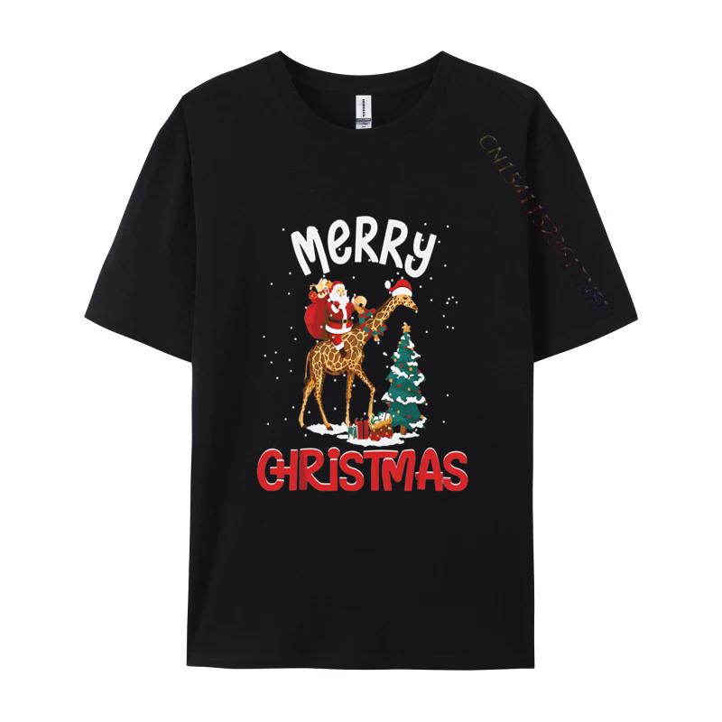 Merry Christmas Giraffe Riding Santa Tshirts Birthday Party Premium TShirt Fashionable Geek Tops Tees Cotton Top TShirts