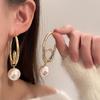 Elegant Geometric Pearl Earrings - European Design with a Chic Metal Style