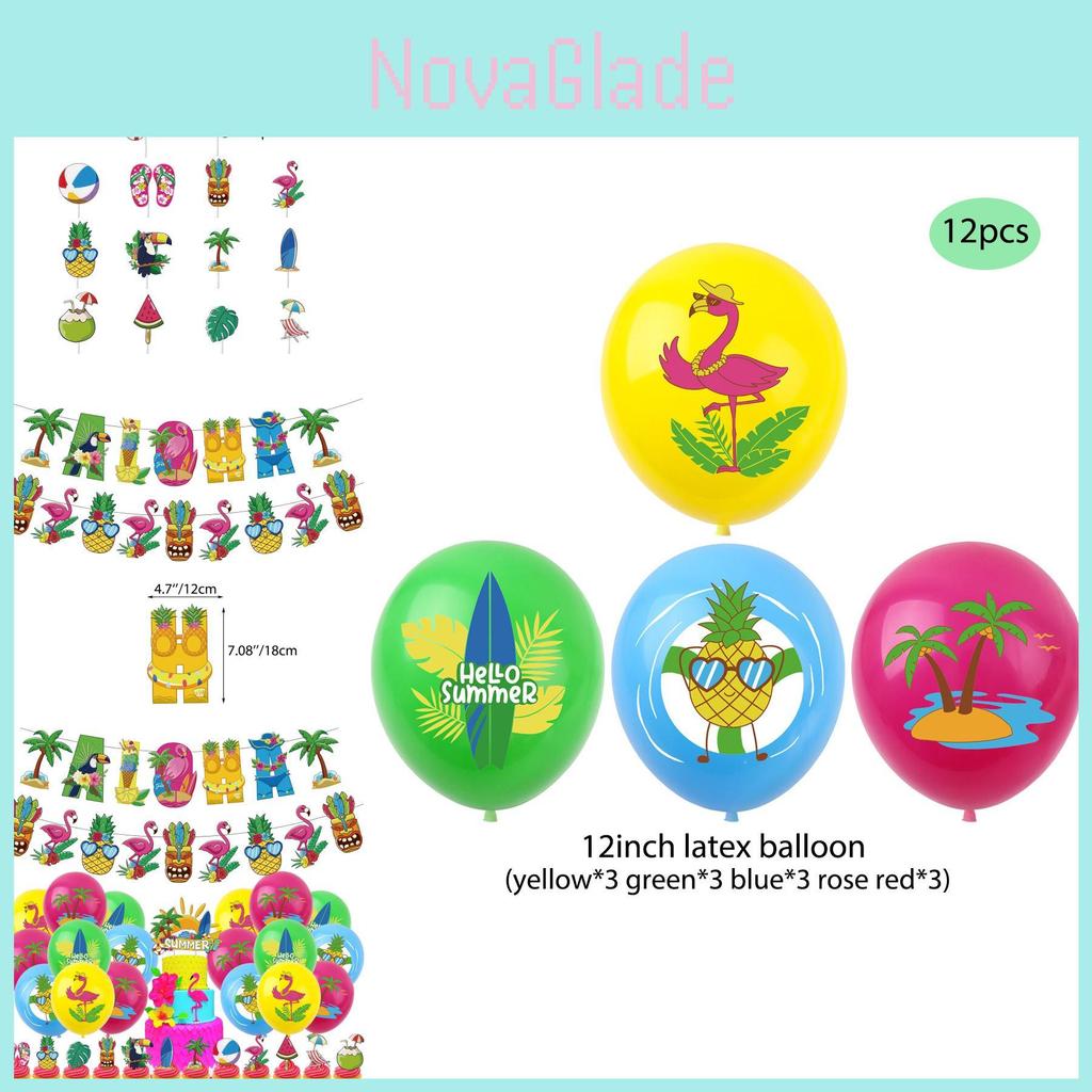 Hawaiian Theme Party Decorations Set Paper Cake Insert Balloons Bunting Flags