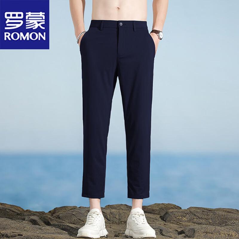 ROMON Men's Summer Ice Silk Stretch Straight Cropped Quick-Dry Casual Pants