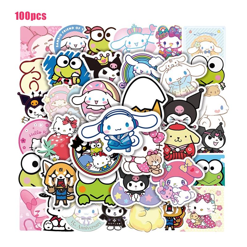 100pcs Sanrio Kuromi Melody Waterproof Reusable Sticker Luggage Decor