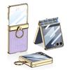 Suitable for Samsung Z FLIP7 Mobile Phone Case Electroplated Finger Ring Hinge Plain Leather Protective Case Flip7 Shell Film Anti Fall Full Package