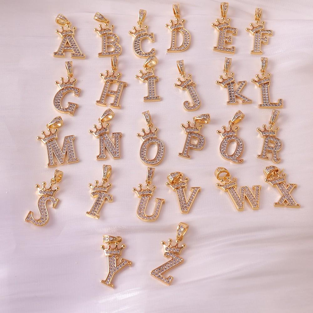 Gold-Plated Crown Rhinestone Letter Pendant Necklace