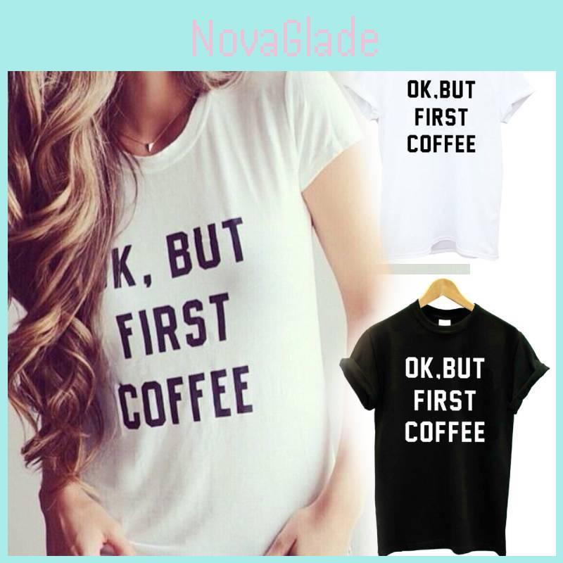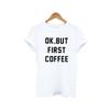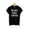 OK BUT FIRST COFFEE Short sleeved T-shirt, made of cotton fabric, is soft and breathable, enhancing daily comfort while maintaining fashion.