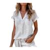 Women's shirt-style top is a versatile piece for casual commuting and daily wear. It features a V-neck, single-breasted buttons, short sleeves, and two chest pocket decorations.