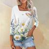 Women's T Shirt Tee Print 3/4 Sleeve Daily Weekend Fashion Basic Square Neck Regular Top