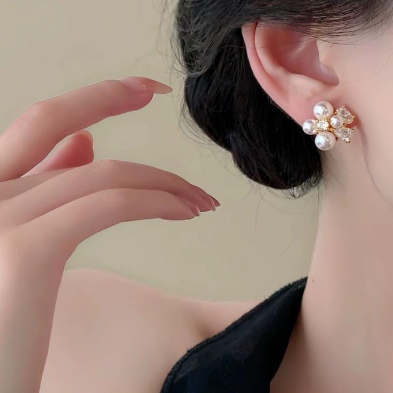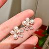 Romantic Zirconia Petal Pearl Stud Earrings: Unique, Beautiful, Light Luxury Flower Design for New Year.