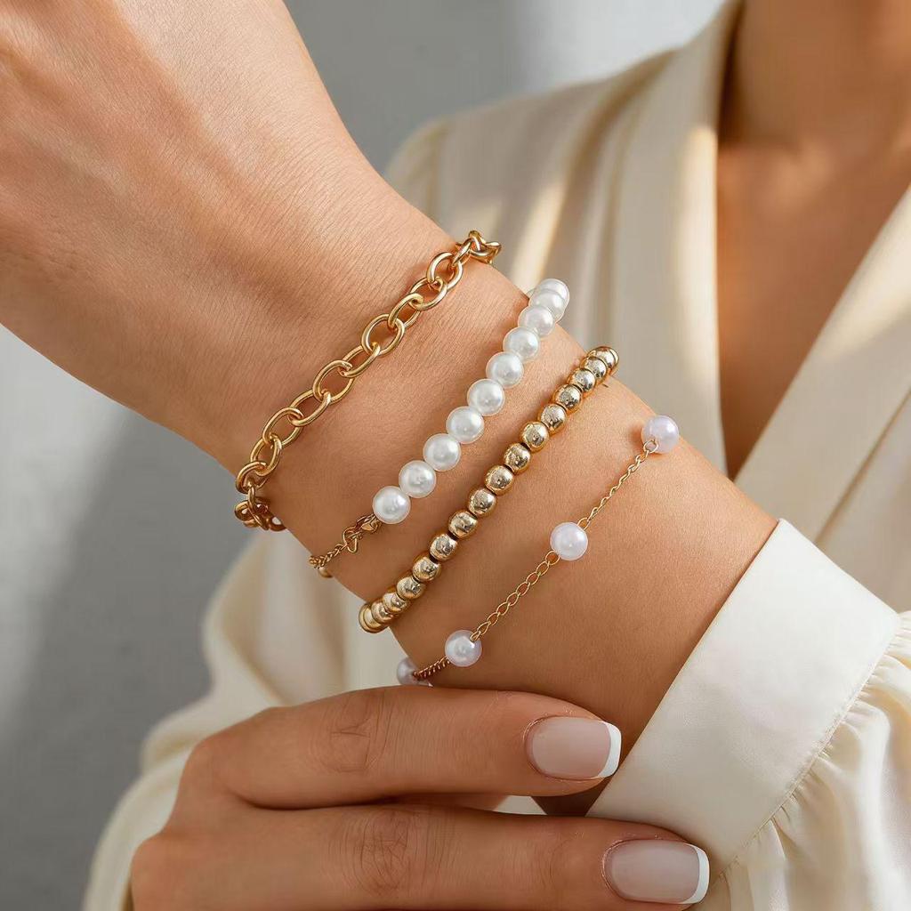 European and American Multi-Layer Beaded Fashion Bracelet Set with Imitation Pearls
