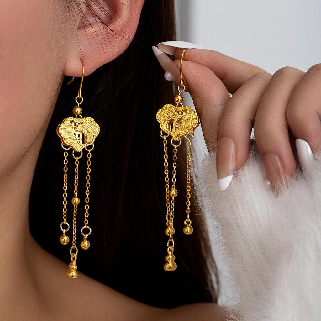 Chinese Retro Personality Earrings: Fu Character, Cloud & Gourd Tassel Design