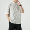 Chinese Style Tang Style Linen Short Sleeved Shirt Men Summer Thin Design Stand Up Collar Buckle Youth Five Quarter Sleeved Shirt