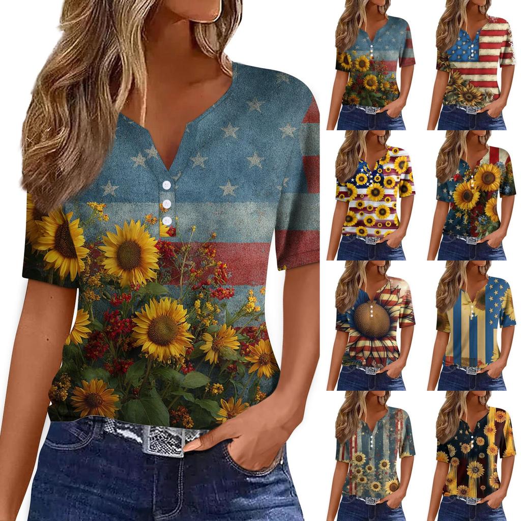 Women's T Shirt Tee Print Button Short Sleeve Daily Weekend Fashion Basic V- Neck Regular Top