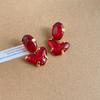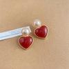 Elegant Retro Red Heart Pearl Earrings for Women - French Style Jewelry