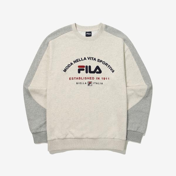 The FILA Color Block Logo Sweatshirt is designed for comfort suitable for exercise and everyday wear. It features a diagonal color block design and soft texture. Its loose fit ensures it accommodates various body types, making it perfect for casual styling.