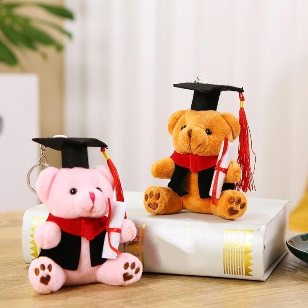 12cm Graduation Bear Plush Toy Soft Stuffed Bear Pendant Cartoon Bear Keychain Desk Decor
