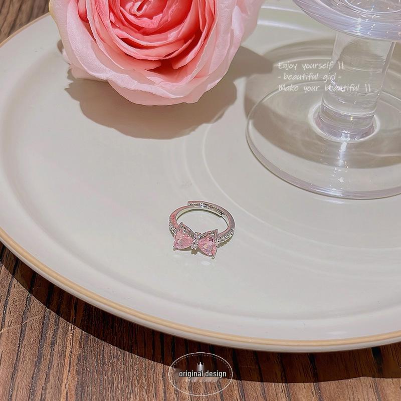 Elegant Pink Zircon Butterfly Adjustable Ring - Korean Light Luxury Design