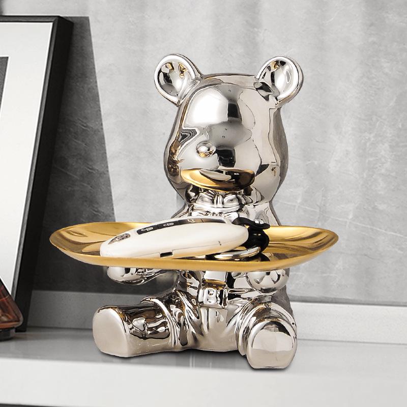 Elegant Ceramic Bear Storage Tray & Piggy Bank - Hallway Shoe Cabinet & Living Room Decor