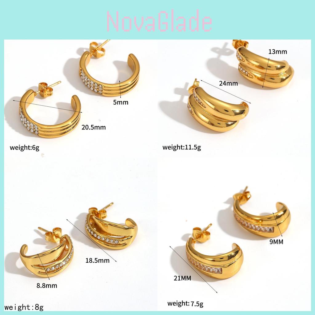 Geometric Stainless Steel Hoop Earrings For Women With Cz Stones Fashion Jewelry