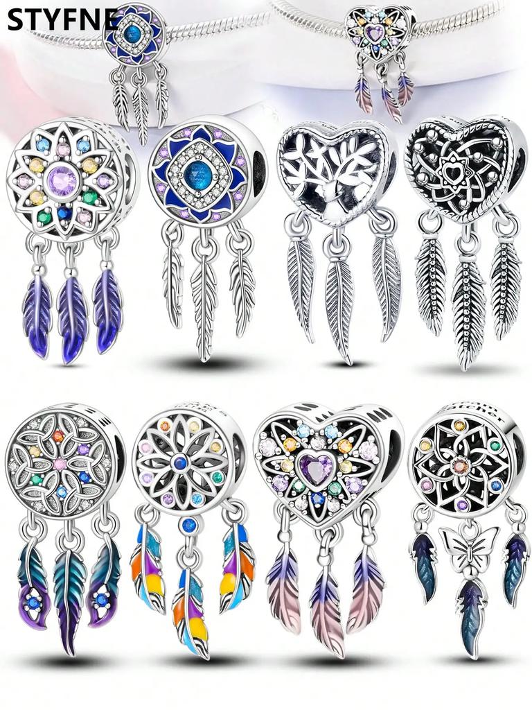 Copper Plated Authentic Charm Bead Charms Colored Feathers Bead Charms Compatible With Bracelets Womens Jewellery Gift