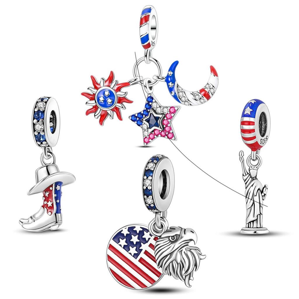 Copper Eagle and America Flag Dangle Copper Statue Of Liberty Charm Bead Charms Compatible With Bangle Bracelets Necklaces Jewellery