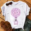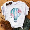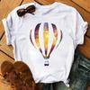 Cartoon Colored Hot Air Balloon Tshirt Womens Summer Round Neck Comfortable Top for Girls Anime Streetwear