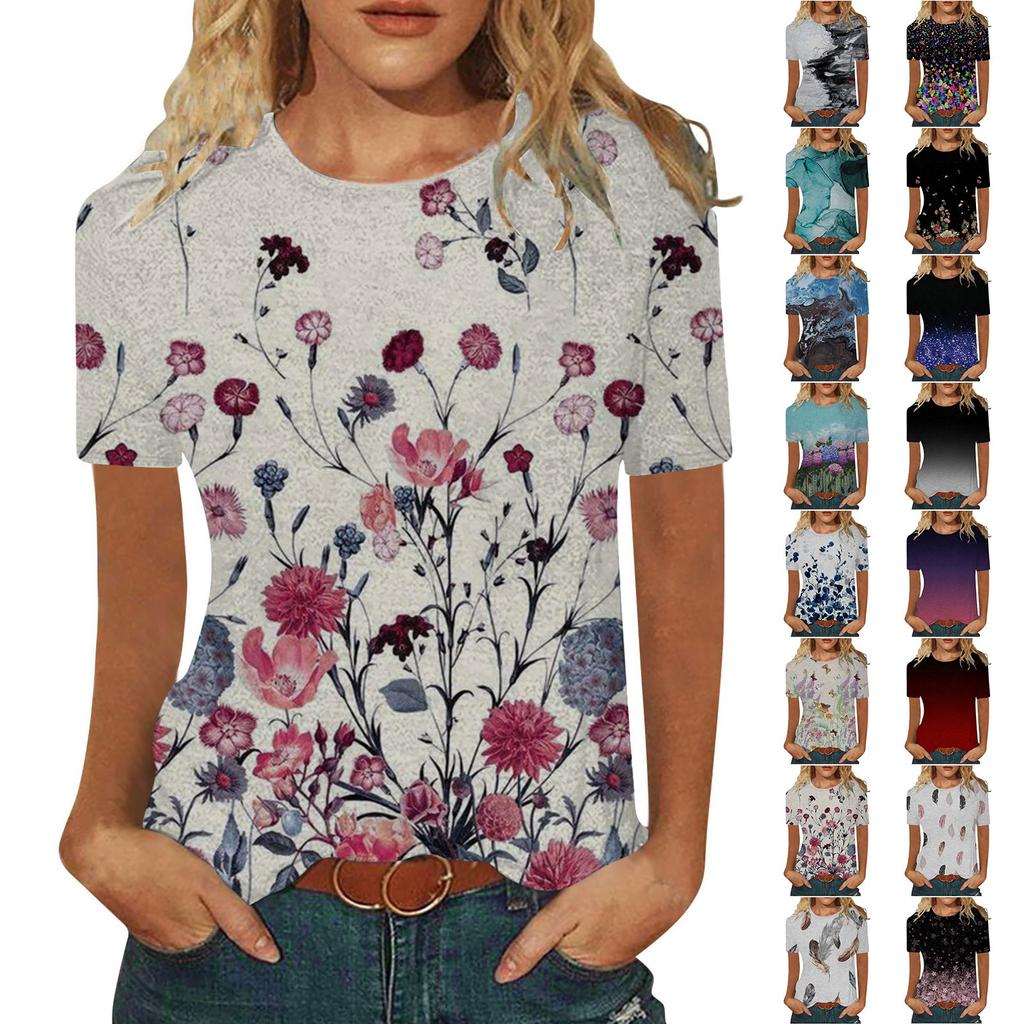 Women's Fashion Casual Comfortable Printed O-Neck Short Sleeve Top Blouse